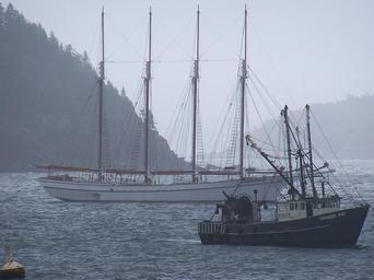 Keywords: anchor anchored boat boats ship ships vessel vessels waves ocean bay harbor coast coastline new england maine islands schooner dragger fishing boat stormy nature outdoors water sail boat