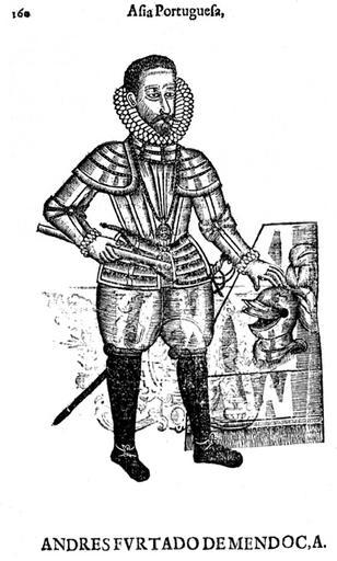| Keywords: André Furtado de Mendonça.jpg  fr Portrait tiré de l'oeuvre de Faria e Sousa Asia portuguesa en Portrait of André Furtado de Mendonça Manuel de Faria e Sousa 1590-1649 Asia portuguesa published in 3 volumes between 1666 and 1674 English translation published in 1695 This image from Volume III page 160 Manuel de Faria e Sousa 1590-1649 1675 PD-old-100 People of Lisbon Military people of Portugal Governors-General of Portuguese India 1558 births 1611 deaths Books from Portugal 17th-century books from Portugal |