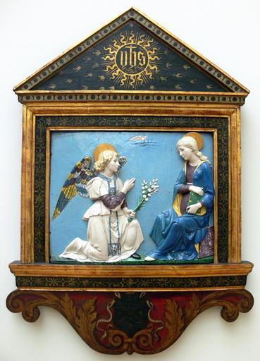 Keywords: Andrea della Robbia Verkündigung.jpg de Andrea della Robbia Verkündigung an Maria Florenz um 1490; gebrannter Ton glasiert Rahmen nicht zugehörig en Andrea della Robbia The Annunciation Florence c 1490; terracotta the frame is not original <br />Skulpturensammlung Inv 149 erworben 1888 Bode-Museum Berlin own 2007 Photo Andreas Praefcke PD-100 Image Andrea della Robbia 141 jpg Object Creator Andrea della Robbia DEFAULTSORT della Robbia Andrea; Bode-Museum Berlin Annunciation Category Italian Renaissance reliefs in the Bode-Museum Reliefs of the Annunciation in Italy Andrea della Robbia Glazed terracotta Enameled terracotta Renaissance reliefs IHS in Italy Photos by User AndreasPraefcke