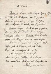 | Keywords: Andreas-laskaratos-he-theotes.jpg en Handwritten poem He Theotes by the Greek satirical poet and writer Andreas Laskaratos 1811-1901 Original page dimensions 204 x 136 mm el Χειρόγραφο οίημα «Ἡ Θεότης» του Έλληνα σατιρικού οιητή και συγγραφέα Ανδρέα Λασκαράτου 1811-1901 Διαστάσεις αρχικού φύλλου 204 x 136 mm before 1901 www vergosauctions com Andreas Laskaratos 1811-1901 other versions PD-old-70-1923 Andreas Laskaratos | ||||