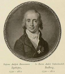 Keywords: Andrey Yakovlevich von Budberg (Russian portraits, Vol.2, Num.164).jpg en Baron Andrey Yakovlevich Budberg 1750-1812 Military Governor of S-Peterburg 1803 Foreign Minister of Russia 1806-1807 With cross of the Order of St George and star of the of the Order of St Alexander Nevsky ru Ба он Анд ей Яковлевич фон Будбе г 1750-1812 военный губе нато Санкт-Пете бу га 1803 минист иност анных дел 1806 1807 С Гео гиевским к естом и звездой О дена Св Александ а евского 2 Budberg 1230615 Author 1797 1807 <gallery> File Andrey Yakovlevich von Budberg Russian portraits Vol 2 Num 164 - retouched jpg </gallery> PD-art-100 Andrey Yakovlevich Budberg 18th-century portraits of men at bust length