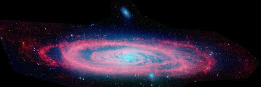| Keywords: Andromeda Galaxy Spitzer.jpg This infrared composite image from NASA's Spitzer Space Telescope shows the Andromeda galaxy a neighbor to our Milky Way galaxy The image highlights the contrast between the galaxy's choppy waves of dust red and smooth sea of older stars blue Spiral galaxies tend to form new stars in their dusty clumpy arms while their cores are populated by older stars The Spitzer view also shows Andromeda's dust lanes twisting all the way into the center of the galaxy a region that is crammed full of stars In visible-light pictures this central region tends to be dominated by starlight http //www spitzer caltech edu/Media/releases/ssc2006-14/ssc2006-14a shtml 2006 June 05 Release Date NASA/JPL-Caltech/P Barmby Harvard-Smithsonian Center for Astrophysics Unless otherwise noted images and video on Spitzer public web sites public sites ending with a spitzer caltech edu address may be used for any purpose without prior permission http //www spitzer caltech edu/Media/mediaimages/copyright shtml PD-USGov Andromeda Galaxy Spitzer space telescope NASA images |