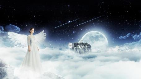 Keywords: angel sky night heaven woman fantasy wings fairy angelic cloud moon star