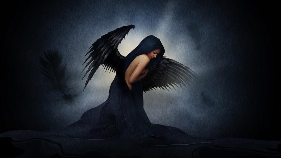 Keywords: angel woman wing female erotic art modern angel figure scene black engel sad young woman digital art mystical composing pretty elegant