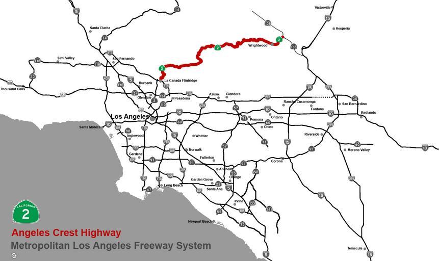 | Keywords: Angeles Crest Highway map.png Map of Angeles Crest Highway ” highlighted on map of the Metropolitan Los Angeles highways and freeways system Northeastern scenic section of California State Route 2 in the San Gabriel Mountains en wikipedia Premeditated Chaos CommonsHelper 2007-07-12 PNG crusade bot wikipedia en PNG crusade bot Original upload log en wikipedia Angeles_Crest_Highway_map png 2007-07-12 00 54 PNG crusade bot 1600×952× 288887 bytes <nowiki>__NOTOC__ Map of the Metropolitan Los Angeles Freeway system with the Angeles Crest Highway highlighted Licensing history 02 27 58 17 April 2006 UTC Bkell Talk contribs <nowiki> badJPEG </nowiki> 16 09 57 25 September 2005 UTC Mike Dillon Talk contribs <nowiki>+cat </nowiki>Category San Gabriel Mountains 22 16 34 9 September 2005 UTC Mikeetc Talk contribs <nowiki>Map of the Metropolitan Los Angeles Freeway system with the Angeles Crest Highway highlighted </nowiki> Angeles Crest Highway 01 California State Route 2 Maps of Los Angeles County California Road maps of state highways in California Roads in Los Angeles County California |