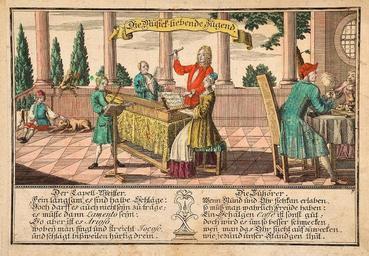 Keywords: Angenehme Bilderlust c1760 07.jpg Die Musick-liebende Jugend und Zuhörer ; Tafel aus Anganehme Bilder-Lust der lieben Jugend zur Ergötzung also eingerichtet Nürnberg Monath o J ca 1760 http //www zisska de/ Zisska Schauer ~ 1760 Creator Unknown <gallery> File Angenehme Bilderlust c1760 01 jpg File Angenehme Bilderlust c1760 05 jpg File Angenehme Bilderlust c1760 06 jpg File Angenehme Bilderlust c1760 07 jpg File Angenehme Bilderlust c1760 08 jpg File Angenehme Bilderlust c1760 12 jpg File Angenehme Bilderlust c1760 15 jpg File Angenehme Bilderlust c1760 21 jpg File Angenehme Bilderlust c1760 23 jpg </gallery> PD-old-100 Images from Zisska Schauer 1760s engravings Chamber music in art Audiences Coffee in art