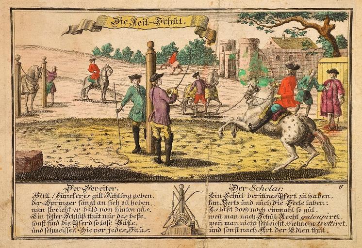 | Keywords: Angenehme Bilderlust c1760 08.jpg Die Reit-Schul; Tafel aus Anganehme Bilder-Lust der lieben Jugend zur Ergötzung also eingerichtet Nürnberg Monath o J ca 1760 http //www zisska de/ Zisska Schauer ~ 1760 Creator Unknown <gallery> File Angenehme Bilderlust c1760 01 jpg File Angenehme Bilderlust c1760 05 jpg File Angenehme Bilderlust c1760 06 jpg File Angenehme Bilderlust c1760 07 jpg File Angenehme Bilderlust c1760 08 jpg File Angenehme Bilderlust c1760 12 jpg File Angenehme Bilderlust c1760 15 jpg File Angenehme Bilderlust c1760 21 jpg File Angenehme Bilderlust c1760 23 jpg </gallery> PD-old-100 Images from Zisska Schauer 1760s engravings Classical dressage Riding schools Riding in art |