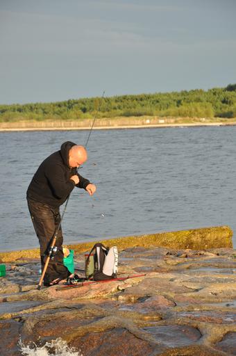Keywords: angler sea man fish fishing patience peace of mind poland