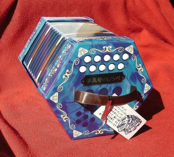 | Keywords: Anglo-concertina-paper-box.jpg ja 創業天明二年 備前屋 の菓子 手風琴のしらべ http //www bizenya co jp/tefukin htm の アングロ・コンサーティーナ コンサーティナ を模した紙の箱 2015年に購入 en This is not a real Anglo-German concertina It is a paper box of the Japanese sweet cake named Tefuukin no Shirabe melody of the accordion sold by the sweets shop BIZENYA which was found in 1782 2016-02-27 own ウィキ太郎 Wiki Taro other versions cc-zero Accordions in art Anglo concertinas | ||||