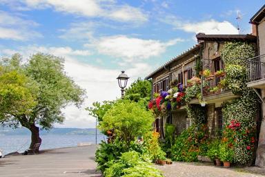 Keywords: anguillara lake bracciano rome lazio italy historic village flowered balcony house flourished flowers summer