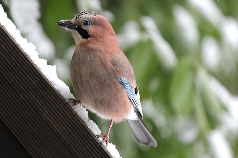 Keywords: animal bird jay garrulus glandarius winter garden foraging