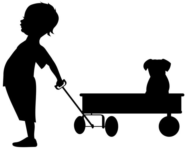 Keywords: animal boy child dog kid pet pulling puppy silhouette various wagon