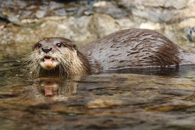 Keywords: animal brown detail fur furry lake mammal otter swim water wet whiskers wild wildlife zoo teeth eyes