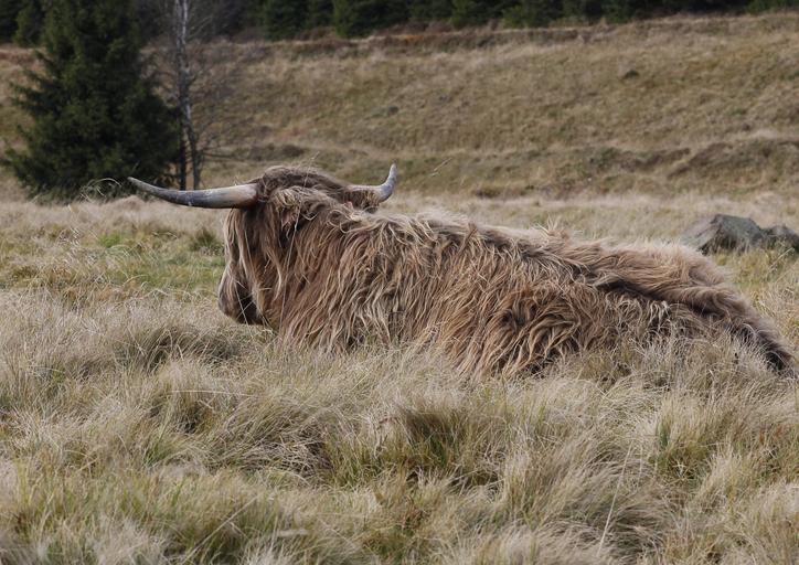 Keywords: animal cow hairy beef mountain kvilda šumava mountains nature corners autumn landscape grass tree meadow photo camera canon