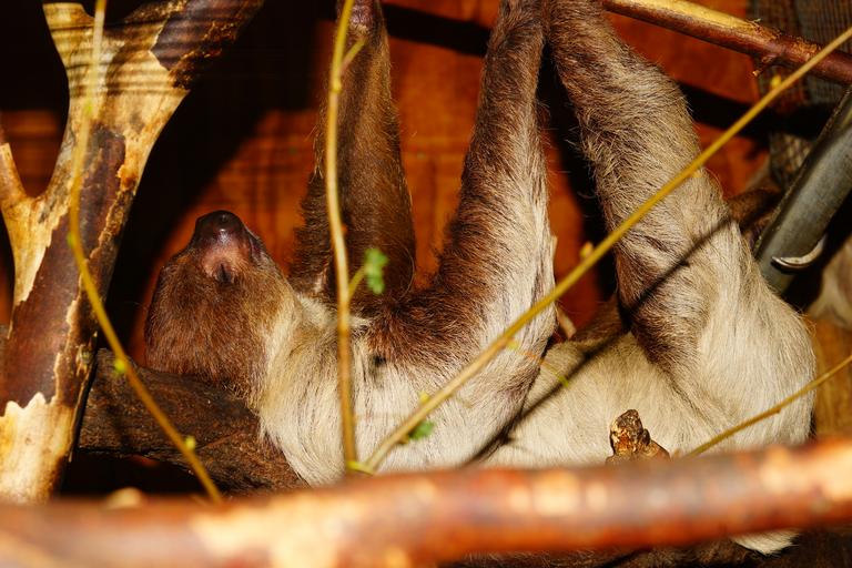 Keywords: animal sloth close sleep tree depend branch rest lazy