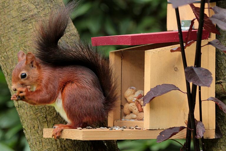 Keywords: animal squirrel sciurus foraging bird meal peanuts