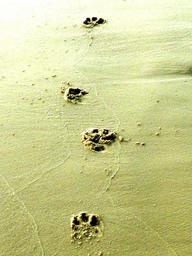 Keywords: animal tracks dog track paw prints sand dog paw tracks in the sand sand beach dog tracks beach track animal nature walk on the beach animal track