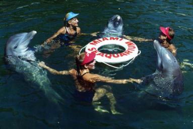 View Original:Animal_trainers_performing_with_dolphins_at_the_Miami_Seaquarium_attraction.jpg (600x401)