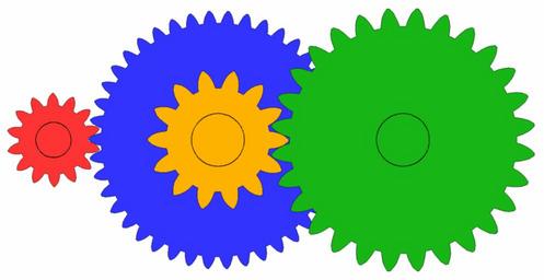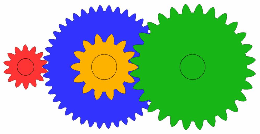 | Keywords: AnimatedGears.gif en Two sets of gears z<sub>1</sub> 14 red ; z<sub>2</sub> 42 blue ; z<sub>3</sub> 14 yellow ; z<sub>4</sub> 28 green de Zwei Getriebestufen mit Zahnrädern z<sub>1</sub> 14 rot ; z<sub>2</sub> 42 blau ; z<sub>3</sub> 14 gelb ; z<sub>4</Sub> 28 grün <br /> Antrieb links Abtrieb rechts<br /> i<sub>Stufe1</sub> z<sub>2</sub> / z<sub>1</sub> 42 / 14 3<br /> i<sub>Stufe2</sub> z<sub>4</sub> / z<sub>3</sub> 24 / 14 2<br /> i<sub>Ges</sub> i<sub>Stufe1</sub> · i<sub>Stufe2</sub> 6 2016-12-05 own Jahobr other versions <gallery caption> File AnimatedGears Frame1 svg static SVG version </gallery> cc-zero Jahobr function animatedGears source code for drawing gears the shape of the gears is not precise It is a hack job that produces a GIF and a SVG 2016-12-05 Jahobr teeth 14 3 14 14 2 14; modul 16 16 24 24; greenRGB 0 1 0 7 0 1; yellowRGB 1 0 7 0 ; blueRGB 0 2 0 2 1 ; redRGB 1 0 2 0 2; violetRGB 0 6 0 2 0 8; diameter modul teeth; center1 0 0; center2 diameter 1 +diameter 2 /2 0; center3 center2 1 + diameter 3 +diameter 4 /2 0; figHandle figure 15674459 ; clf axesHandle axes; hold axesHandle 'on' set figHandle 'Units' 'pixel' ; xlimValues -220 1410; ADJUST ylimValues -420 420; ADJUST set figHandle 'position' 1 1 sum abs xlimValues sum abs ylimValues ; big start image for antialiasing later x y width hight set axesHandle 'position' -0 05 -0 05 1 1 1 1 ; stetch axis bigger as figure easy way to get rid of ticks x y width hight xlim xlimValues ; ylim ylimValues ; axis equal; drawnow; nFrames 80; maxMovementOfTheSlowestTooth 2 pi/teeth 4 ; angelsSlow linspace 0 maxMovementOfTheSlowestTooth nFrames+1 ; angelsSlow angelsSlow 1 end-1 ; remove last frame it would be double secondRatio teeth 4 /teeth 3 ; angelsMedium angelsSlow secondRatio; angelsMedium angelsMedium + 2 pi/teeth 3 0 5; ALLIGNMENT; THIS MAY NEED MANUAL ADJUSTMENT firstRatio teeth 2 /teeth 1 ; angelsFast angelsMedium firstRatio; angelsFast angelsFast + 2 pi/teeth 1 0 5; ALLIGNMENT; THIS MAY NEED MANUAL ADJUSTMENT for iFrame 1 nFrames cla axesHandle drawCogWheel axesHandle center1 teeth 1 modul 1 redRGB -angelsFast iFrame ; left cogwheel fast drawCogWheel axesHandle center2 teeth 2 modul 2 blueRGB angelsMedium iFrame ; cogwheel 2 center drawCogWheel axesHandle center2 teeth 3 modul 3 yellowRGB angelsMedium iFrame ; cogwheel 3 center drawCogWheel axesHandle center3 teeth 4 modul 4 greenRGB -angelsSlow iFrame ; right cogwheel slow drawnow pause 0 01 f getframe figHandle ; f cdata imresize f cdata 0 5 ; the size reduction adds antialiasing if iFrame 1 im map rgb2ind f cdata 32 'nodither' ; 32 colores create color map im imresize im 1 ; im 1 1 1 nFrames 0; allocate plot2svg 'animatedGears_Frame1 svg' figHandle by Juerg Schwizer See http //www zhinst com/blogs/schwizer/ else imtemp rgb2ind f cdata map 'nodither' ; im 1 iFrame imtemp; end end imwrite im map 'animatedGears gif' 'DelayTime' 1/25 'LoopCount' inf save gif return function drawCogWheel axesHandle center toothNumber modul colFilling startOffset DRAWTOOTHEDWHEEL - draw a simple Toothed Wheel Input axesHandle center x y toothNumber scalar modul scalar tooth size col color of line r g b colFilling color of filling r g b startOffset start rotation scalar rad effectiveRadius modul toothNumber/2; effective effectiveRadius outsideRadius effectiveRadius+1 modul; +---+ +---+ upperRisingRadius effectiveRadius+0 5 modul; / \ / \ effective Radius / \ / \ lowerRisingRadius effectiveRadius-0 5 modul; I I I I rootRadius effectiveRadius-1 1 modul; + - - - + + - - - + + angleBetweenTeeth 2 pi/toothNumber; angle between 2 teeth angleOffPoints 0 angleBetweenTeeth/16 2 pi ; angleOffPoints angleOffPoints+startOffset; apply rotation offset angleOffPoints 7 16 end angleOffPoints 7 16 end + 1/toothNumber 1 2; hack to create smaller tooth tip angleOffPoints 11 16 end angleOffPoints 11 16 end - 1/toothNumber 1 2; hack to create smaller tooth tip angleOffPoints 8 16 end angleOffPoints 7 16 end + angleOffPoints 9 16 end /2; shift the neighbouring tip point in accordingly angleOffPoints 10 16 end angleOffPoints 11 16 end + angleOffPoints 9 16 end /2; shift the neighbouring tip point in accordingly angleOffPoints 6 16 end angleOffPoints 6 16 end + 1/toothNumber 1 7; hack to create slender upperRisingRadius angleOffPoints 12 16 end angleOffPoints 12 16 end - 1/toothNumber 1 7; hack to create slender upperRisingRadius radiusOffPoints angleOffPoints; allocate with correct site radiusOffPoints 1 16 end rootRadius; center bottom I radiusOffPoints 2 16 end rootRadius; left bottom I radiusOffPoints 3 16 end rootRadius; left bottom corner + radiusOffPoints 4 16 end lowerRisingRadius; lower rising bottom \ radiusOffPoints 5 16 end effectiveRadius; rising edge \ radiusOffPoints 6 16 end upperRisingRadius; upper rising edge \ radiusOffPoints 7 16 end outsideRadius; right top corner + radiusOffPoints 8 16 end outsideRadius; right top I radiusOffPoints 9 16 end outsideRadius; center top I radiusOffPoints 10 16 end outsideRadius; left top I radiusOffPoints 11 16 end outsideRadius; left top corner + radiusOffPoints 12 16 end upperRisingRadius; upper falling edge / radiusOffPoints 13 16 end effectiveRadius; falling edge / radiusOffPoints 14 16 end lowerRisingRadius; lower falling edge / radiusOffPoints 15 16 end rootRadius; right bottom corner + radiusOffPoints 16 16 end rootRadius; right bottom I X Y pol2cart angleOffPoints radiusOffPoints ; X X+center 1 ; center offset Y Y+center 2 ; center offset patch X Y colFilling 'EdgeColor' 0 0 0 'LineWidth' 1 0 plot axesHandle X Y '-x' 'linewidth' 2 'color' 0 0 0 ; effective Radius X Y pol2cart angleOffPoints effectiveRadius ; X X+center 1 ; center offset Y Y+center 2 ; center offset plot axesHandle X Y '- ' 'color' 0 0 0 ; shaft shaftRadius modul 6 /2; small radius assuming the effective radius a 6-tooth wheel would have X Y pol2cart angleOffPoints shaftRadius ; X X+center 1 ; center offset Y Y+center 2 ; center offset plot axesHandle X Y 'linewidth' 2 'color' 0