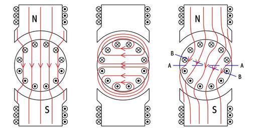 Keywords: Ankerreactie.svg en Electrical drawings which shows how Anchor Reaction works inside an electric DC-motor own 2007-12-02 PieterJanR other fields I v + SVG electric motors