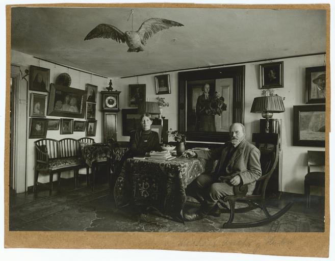 | Keywords: Anna and Michael Ancher.jpg Anna and Michael Ancher in their Skagen home http //www flickr com/photos/departmentofmapsprintsandphotographstheroyallibrarydenmark/6045157203/sizes/o/in/set-72157627059313066/ circa 1915 author Portraits of Anna Ancher Portraits of Michael Ancher Couples in Denmark Rooms in Denmark Files from The Portrait Collection of the Danish Royal Library Michael and Anna Ancher's House anonymous-EU PD-1923 | ||||
