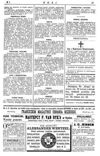 | Keywords: Anna Woynillowicz z Wankowiczow 1826-1893 - nekrolog - Kraj - 1894 nr 01.jpg en magazine Kraj Russian empire 1 1894 AD page 27 Nekrolog of Anna Woynillowicz 1826-1893 Edward Woynillowicz 1847-1928 's mother ru жу нал К ай Российская импе ия 1 1894 г ст аница 27 ек олог на Анну Эдва довну Войнилович 1826-1894 - мать Эдва да Адамовича Войниловича 1847-1928 be часопіс К ай Расійская імпе ыя 1 1894 г ста онка 27 ек алог на Ганну Эдва даўну Вайніловіч 1826-1893 - маці Эдва да Адамавіча Вайніловіча 1847-1928 magazine Kraj Russian empire 1 1894 AD editor Erazm Piltz 1894 free public domain Ганна Эдва даўна Ваньковіч Ганна Эдва даўна Вайніловіч Anna Wankowicz Anna Woynillowicz Анна Эдва довна Ванькович Анна Эдва довна Войнилович Войниллович Эдва д Вайніловіч Эдва д Адамавіч Вайніловіч Edward Woyniłłowicz Edward Woynillowicz Edward Woyniłłowicz Woyniłłowicz family 1894 obituaries Obituaries of Poland PD-old |