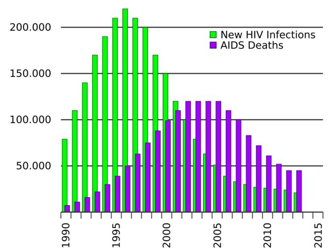 | Keywords: Annual Ethiopia AIDS deaths.svg translate yes en New HIV infections each year and AIDS deaths occurring during the year in Ethiopia; data from http //www unaids org/en/media/unaids/contentassets/documents/document/2014/2014gapreportslides/HIV2013Estimates_1990-2013_22July2014 xlsx UNAIDS GAP Report 2014 2014-10-19 own Delphi234 other versions cc-zero Uploaded with UploadWizard AIDS statistics AIDS in Ethiopia | ||||
