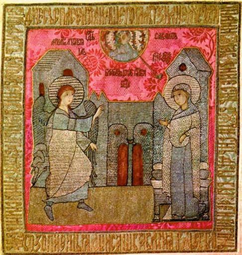 Keywords: Annunciation by Anastasia Romanovna.jpeg Pereslavl-Zalessky Historical Arhitectural and Art Museum- reserve Благовещение и икита великомученник и икита Пе еславский хо угвь двухсто онняя п едмет деко ативно-п икладного искусства осква асте ская Анастасии Романовны Се едина XVI века http //www russianmuseums info/M1466item Се едина XVI века масте ская ца ицы Анастасии Романовны Embroidery in Pereslavl-Zalessky museum 16th-century Russian orthodox embroidery Anastasia Romanovna Embroidery of Russian tsarinas and Grand Duchess Files uploaded by Shakko from various sources Khorugv Tapestries of Annunciation Russian museum photo Institution Pereslavl-Zalessky museum-preserve PD-Art