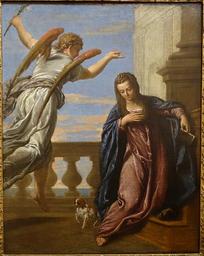 Keywords: Annunciation, workshop of Paolo Caliari, called Veronese, mid 1580s, oil on canvas - Blanton Museum of Art - Austin, Texas - DSC07810.jpg en Exhibit in the Blanton Museum of Art - Austin Texas USA This work is old enough so that it is in the public domain 2015-11-15 15 47 04 own Daderot other versions PD-old-100 cc-zero Italian paintings in the Blanton Museum of Art School of Paolo Veronese |
