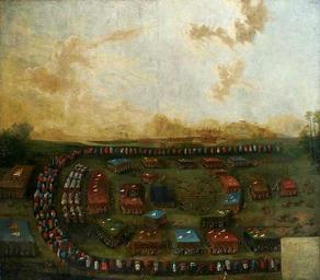 | Keywords: Anonymous March of Turkish troops.jpg Artwork Creator Anonymous 4quarter other date century 17 oil canvas cm 272 307 Institution National Museum Warsaw Not on view accession number MP 4987 object history credit line The march in the vast plain with a city in the horizon Belgrade Galata suburb of Istanbul or Vienna 20 horse regiments formed in rectangles one regiment of infantry and four rows of cannons surrounds the guard of honor with camels Two regiments of cavalry ride in line on the left http //cyfrowe mnw art pl/dmuseion/docmetadata id 16928 cyfrowe mnw art pl PD-old-100 DEFAULTSORT 1675-1700; March of Turkish troops 17th-century unidentified painters 17th-century paintings in the National Museum in Warsaw Great Turkish War Historical images of Belgrade Military parades in art Military of the Ottoman Empire |