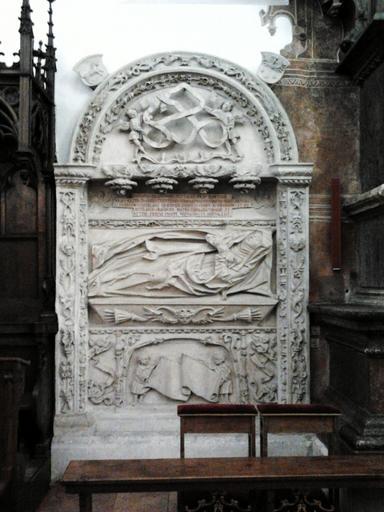 | Keywords: Anonymous Monument to Barbara of Rożnów 01.jpg Artwork Creator Anonymous ca 1520 sandstone cm 326 218 Institution Tarnów Cathedral Right Choir accession number object history ProvenanceEvent 1520 commission Jan Tarnowski credit line BARBARA DE ROŻNÓW NEPTA EX FILIO ZAWYSSII/ NIGRI MILITIS IN ORBE CHRISTIANO NOMINATISSIMI CONJUGI VERO JOANNIS/ A THARNOW CASTELANE CRACOVIEN JOANNES COMES A THARNOW ET IPE/ CASTELANUS CRACOVIEN MATRI INDULGENTISSIME ET/ OPTIME FEMINE POSUIT VIXIT ANNIS LXX OBIIT A 1517 It is a unique example of Gothic tradition being suppressed by Renaissance patterns originating from Italy through Hungary Barbara of Rożnów 1447 - 1517 was the granddaughter of the famous knight Zawisza Czarny of Garbowo wife of Stanisław of Tęczyn and after his death she was the second wife of Jan Amor Tarnowski In upper part the monument is adorned with 2 cartouches with coats of arms Sulima of Barbara's father and Starykoń of Barbara's mother The figure of Barbara was formed to resemble Sorrowful Mary from the Crucifixion group http //strony tarman pl/~andmel/nagrobkitar/nagrobki htm strony tarman pl own cc-zero DEFAULTSORT 1520 circa; Monument to Barbara of Rożnów Tomb monument of Barbara of Rożnów in the Tarnów Cathedral |