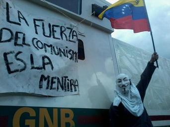 Keywords: Anonymous protester 2 Venezuela 2014.jpg en A protester wearing an Anonymous mask and holding a Venezuelan flag The sign says The strength of comunism is the deceit es Un manifestante llevando una máscara de Anonymous y sosteniendo una bandera venezolana La fuerza del comunismo es la mentira 2014-03-16 13 44 12 own Jamez42 cc-zero Uploaded with UploadWizard Demonstrations and protests opposing Bolivarian Revolution Photographs of flags of Venezuela Demonstrations and protests in Venezuela in 2014 |