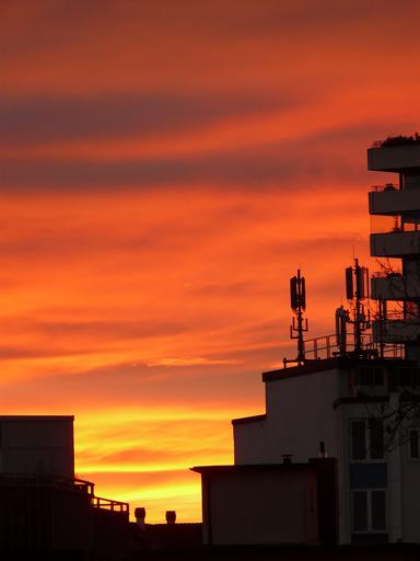 Keywords: antennas transmitter radio system afterglow sunset sky clouds fire glow burn home architecture technology