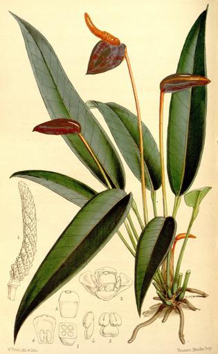 | Keywords: Anthurium scherzerianum CBM.png en Anthurium scherzerianum botanical drawing Curtis's Botanical Magazine v 88 ser 3 v 18 1862 W Fitch d 1892 1862 PD-Art PD-old-100-1923 1892 Anthurium scherzerianum - botanical illustrations Curtis's Botanical Magazine Volume 88 |