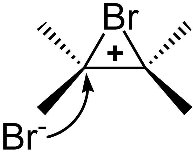 Keywords: Anti-Addition.png de anti-Addition von Brom an ein Alken en anti-addition of bromine to an alkene own using ChemDraw 8 0 2008-10-25 Eschenmoser Halogen addition reactions Reactions of alkenes Reactions of bromine