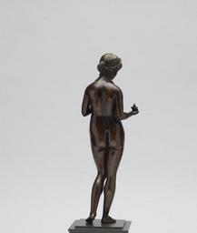Keywords: Antico - Venus as Spiritual Love (Venus Caritas) - Walters 541027 - View C.jpg The artist's preoccupation with antiquity earned him his nickname His patrons the Gonzaga family of Mantua sent him to Rome to study ancient sculpture so that he would be able to seek out antiquities for purchase discern forgeries and produce small versions in bronze of famous statues The last are usually creative interpretations which he called his antiquities This fine Venus may be loosely based on the same unrestored torso of a Roman copy after a Greek original as Venus Pudica Typical of Antico's style are the highly finished surface dark patina touches of gilding in the hair and silver inlay for the eyes a detail found in ancient bronzes This Venus represents Spiritual Love expressed through her modest pose her lamp of celestial fire and her crown of Virtue Around 1520 Antico was creating pieces for his major patron in Mantua the marchioness Isabella d'Este whose refined tastes are here exemplified between 1520 1523 bronze with traces of gilt and silver inlay cm 45 6 accession number 54 1027 30236 Arnold Seligmann New York date and mode of acquisition unknown Henry Walters Baltimore 1931 mode of acquisition unknown Walters Art Museum Henry Walters Acquired by Henry Walters 1931 The Allure of Bronze The Walters Art Gallery Baltimore 1995 I tesori del collezionismo dei Gonzaga Museo di Palazzo Ducale Mantova 2008-2009 Antico The Golden Age of Renaissance Bronzes National Gallery of Art Washington; The Frick Collection New York 2011-2012 place of origin Mantua Italy Walters Art Museum license Renaissance sculpture in the Walters Art Museum Pier Jacopo Alari Bonacolsi Media contributed by the Walters Art Museum needs category review |