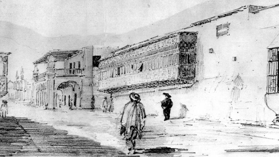 Keywords: Antíguo jirón Pizarro.jpg es Aparece en primer plano la Casa de la Marqueza de Herrera viuda de Bracamonte ; en la esquina el antíguo Palacio Municipal painting 1839 photo 2012-05-20 Dibujo del antiguo jirón Pizarro en el centro histórico de Trujillo Perú publicado en Perú en 1839 Creator Léonce Angrand 1886 Paintings Trujillo Peru Léonce Angrand |
