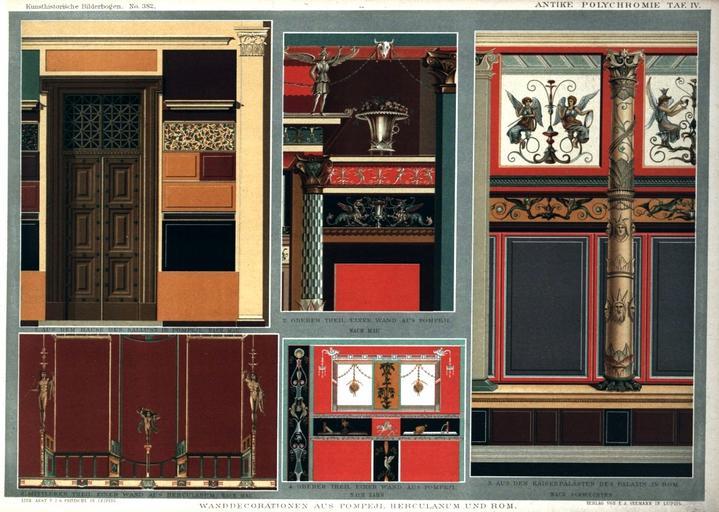 | Keywords: Antike Polychromie 3.jpg Image Antike Polychromie 3 jpg Coloured details of classic roman architecture Kunsthistorische Bilderbogen Verlag E A Seemann Leipzig 1883 Creator Unknown PD-Art PD-old-100 Classic antiquity Ancient Roman frescos of Pompeii Pompeii in art - Wall paintings Ancient Roman frescos of Herculaneum Ancient Roman frescos in Rome Polychromy in antique art Bilderbogen Historical images of House of Sallustius Pompeii Ancient Roman frescos from Pompeii in the Museo Archeologico Naples |