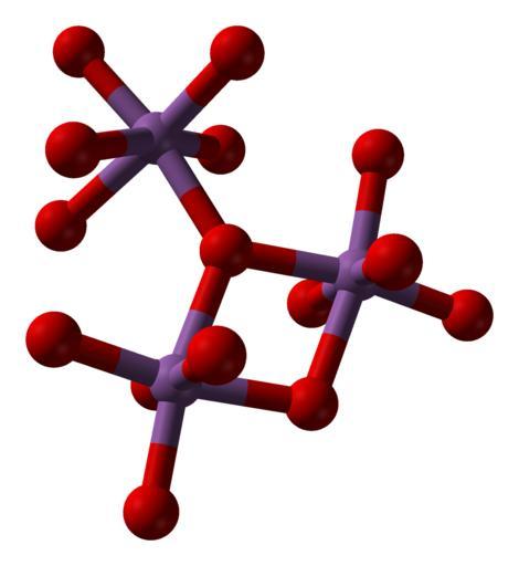 | Keywords: Antimony-pentoxide-xtal-1979-O1-coord-B-3D-balls.png Ball-and-stick model of the coordination geometry of oxygen O1 in the crystal structure of antimony pentoxide Sb<sub>2</sub>O<sub>5</sub> X-ray crystallographic data from http //dx doi org/10 1107/S056774087900409X Acta Cryst 1979 B35 539-542 Model constructed in http //www crystalmaker com/ CrystalMaker 8 1 Image generated in http //accelrys com/products/discovery-studio/visualization/discovery-studio-visualizer html Accelrys DS Visualizer Own 2009-06-01 Ben Mills Benjah-bmm27 Images by Ben Mills Ball-and-stick models Antimony pentoxide |