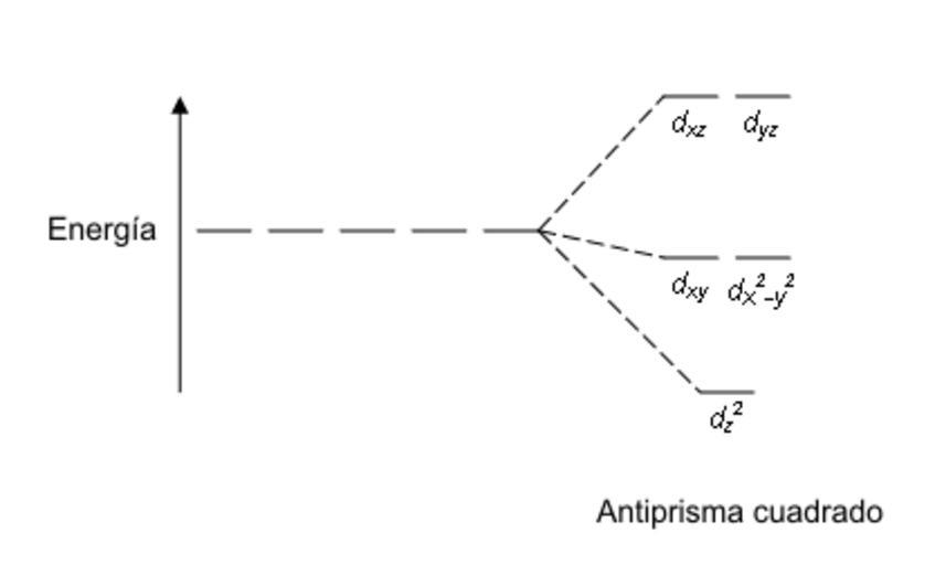 Keywords: Antiprismatico cuadrado.PNG es Diagrama de separación de orbitales en un campo antiprismatico cuadrado own J3D3 Coordination chemistry Computational chemistry Molecular orbitals energy levels