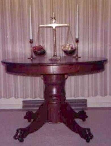 Keywords: Antique claw foot table.JPG 19th century wooden claw foot table with cabriole leg own Photo 1970s; table from about 1800's JGKlein Wooden tables 1800s about Round tables Renaissance Revival furniture 1800s about Pedestal tables