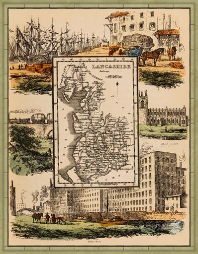 Keywords: antique map railway lines railway train char t cartography vintage victorian lancashire england britain british landmarks architecture seaport drawings etchings print art