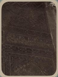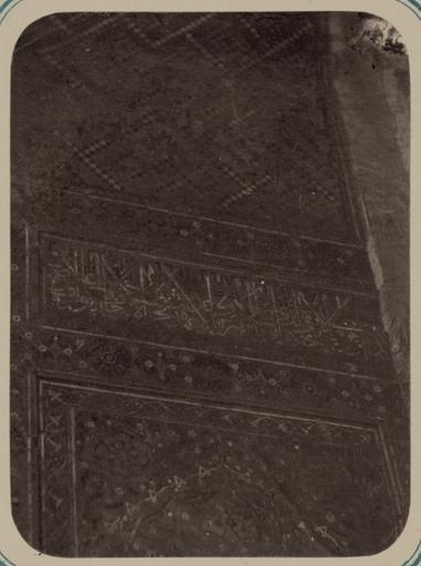 | Keywords: Antiquities of Samarkand. Inner Courtyard of the Shir Dar Madrasah (Western Side). Inscription on the Right Side of the Main Niche WDL3805.png  Artwork ru Богаевский  иколай Владими ович 1843 1912 гг fr Bogaevskii Nikolaï V 1843-1912 en Bogaevskii Nikolai V 1843-1912 zh 亚历山大·L· ,1840-1888 年 pt Bogaevskii Nikolai V 1843-1912 ar بوغافسكي، نيكولاي ف ، 1843-1912 es Bogaevskii Nikolai V 1843-1912 ru Сама кандские д евности Внут енний дво мед есе Ши -До западная сто она  адпись на п авой сто оне главной ниши fr Antiquités de Samarcande Cour intérieure de la madrasa de Shir Dar côté ouest Inscription sur le côté droit de la niche principale en Antiquities of Samarkand Inner Courtyard of the Shir Dar Madrasah Western Side Inscription on the Right Side of the Main Niche zh 撒马尔罕古迹  尔·达伊斯兰教学校内部庭院(西侧) 主壁龛右侧铭文 pt Antiguidades de Samarcanda Pátio interno da madrassa Shir Dar lado oeste Inscrição no lado direito do nicho principal ar آثار سمرقند الفناء الداخلي لمدرسة شير دار الجهة الغربية نقش على الجانب الأيمن للمِشْكاة الرئيسية ru Эта фотог афия внут еннего дво а мед есе Ши -До в Сама канде Узбекистан соде жится в а хеологической части <em> Ту кестанского альбома </em> Шеститомное фотог афическое исследование было подготовлено и издано в 1871 1872 гг под пат онажем гене ала Константина П фон Кауфмана пе вого гене ал-губе нато а 1867 1882 гг Ту кестана как называли в то в емя те  ито ию Цент альной Азии п инадлежавшую Российской импе ии В альбоме уделяется особое внимание исламской а хитекту е Сама канда в том числе памятникам XIV и XV вв пе иода п авления Тиму а Таме лана и его п еемников В цент е Сама канда находится ансамбль Регистан объединяющий в себе т и основных об азца <em>madrasah</em> мед есе  елигиозных школ Вто ая мед есе в ансамбле Ши -До была пост оена в 1619 1636 гг во в емена династии Ашта ханидов  есмот я на значительные пов еждения нанесенные мед есе в течение многих веков она остается одним из самых богато ук ашенных памятников в Цент альной Азии Фо ма этой мед есе является типичной для Цент альной Азии   п ямоугольный дво ок уженный двухэтажной а кадой в кото ой находились комнаты для ученых Здесь изоб ажена п авая сто она главной а очной ниши западной стены ее пове хность пок ыта многоцветной плиткой майоликой  а главной пове хности видны пе есекающиеся геомет ические фигу ы с надписями из калимы исламской декла ации ве ы выполненными куфическим письмом В цент е изоб ажения видна го изонтальная надпись в  укописном стиле Пове хность об амлена ве тикальными полосами с цветочными узо ами <br>А хитекту ные ук ашения и деко ативные элементы;  адписи; Исламская а хитекту а;  ед есе; Фотог афические исследования fr Cette photographie de l'intérieur de la cour de la madrasa de Shir Dar à Samarcande Ouzbékistan est extraite de l'ouvrage archéologique <em>Album du Turkestan</em> Cet inventaire photographique en six volumes fut réalisé entre 1871 et 1872 sous le patronage du général Konstantin P von Kaufman premier gouverneur général 1867-1882 du Turkestan nom donné aux territoires d'Asie centrale de l'Empire russe L'album consacre une attention particulière à l'architecture islamique de Samarcande avec notamment des monuments datant des XIV<sup>e</sup> et XV<sup>e</sup> siècles lors du règne de Tamerlan et de ses successeurs Situé au centre de Samarcande l'ensemble du Registan est composé de trois exemples majeurs de <em>madrasa</em> école religieuse La seconde madrasa de l'ensemble celle de Shir Dar fut construite entre 1619 et 1636 au cours de la dynastie astrakane Malgré les dommages considérables subis au cours des siècles elle demeure l'un des monuments les plus luxueusement décorés d'Asie centrale Typique de la région cette madrasa est formée d'une cour rectangulaire entourée d'une arcade à deux étages qui contient des salles réservées aux érudits Cette photographie présente le côté droit de la grande niche voûtée du mur ouest dont les surfaces sont recouvertes de carreaux de majolique polychromes La surface principale est décorée de grandes figures géométriques s'entrecroisant qui contiennent des inscriptions tirées de la chahada profession de foi islamique en écriture kufique angulaire Une inscription horizontale en style cursif est visible au centre de cette photographie La surface est bordée de bandes verticales dotées de motifs à fleurs <br>Décorations et ornements architecturaux; Ins