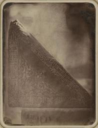 Keywords: Antiquities of Samarkand. Madrasah of Bibi Khanym. Congregational Mosque. Inscription on the Posterior of the Marble Reading-Stand WDL3766.png Artwork ru Богаевский иколай Владими ович 1843 1912 гг fr Bogaevskii Nikolaï V 1843-1912 en Bogaevskii Nikolai V 1843-1912 zh 亚历山大·L· ,1840-1888 年 pt Bogaevskii Nikolai V 1843-1912 ar بوغافسكي، نيكولاي ف ، 1843-1912 es Bogaevskii Nikolai V 1843-1912 ru Сама кандские д евности ед есе Биби Ханым Собо ная мечеть адпись на задней сто оне м амо ного пюпит а лау fr Antiquités de Samarcande Madrasa de Bibi Khanym Mosquée de congrégation Inscription sur la face postérieure du pupitre en marbre  Lau en Antiquities of Samarkand Madrasah of Bibi Khanym Congregational Mosque Inscription on the Posterior of the Marble Reading-Stand zh 撒马尔罕古迹 比比·哈努姆伊斯兰教学校 公理会清 寺 大理石诵经台背 的铭文 pt Antiguidades de Samarcanda Madrassa de Bibi Khanym Mesquita congregacional Inscrição na parte posterior do atril de mármore Lau ar آثار سمرقند مدرسة بيبي خانوم المسجد الجامِع نقش على الجزء الخلفي من منصة قراءة القرآن الرخامية ru Эта фотог афия задней т еугольной сто оны м амо ного де жателя Ко ана в главной мечети ансамбля Биби Ханым в Сама канде Узбекистан соде жится в а хеологической части <em> Ту кестанского альбома </em> Шеститомное фотог афическое исследование было п оведено в 1871 1872 гг под уководством гене ала Константина П фон Кауфмана пе вого гене ал-губе нато а 1867 1882 гг Ту кестана как называли те ито ию Цент альной Азии п инадлежавшую Российской импе ии В альбоме уделяется особое внимание исламской а хитекту е Сама канда в том числе памятникам XIV и XV вв пе иода п авления Тиму а Таме лана и его п еемников Пост оенный в 1399 1405 гг с использованием т офеев индийской кампании Тиму а ансамбль Биби Ханым был местом асположения главной или пятничной мечети го ода названной в честь ста шей жены Тиму а Са ай ульк Ханым ечеть находящаяся в цент е ансамбля является одной из к упнейшей в исламском ми е Внут и мечети находится ог омный де жатель Ко ана <em> rihal</em> поже твованный внуком Тиму а Улуг-Беком и состоящим из двух массивных т еугольных м амо ных блоков покоящихся на м амо ном постаменте Здесь показана задняя т еугольная сто она п авого блока ук ашенная езными деко ациями соде жащими цветочные узо ы с каемками укописного письма Элемент заднего фона был удален чтобы подче кнуть езьбу В 1875 г че ез несколько лет после того как была сделана эта фотог афия пюпит был пе енесен во дво пе ед мечетью <br> адписи; Подставки для Ко ана; Фотог афические исследования fr Cette photographie d'un côté triangulaire postérieur du porte-Coran en marbre de la mosquée principale de l'ensemble de Bibi Khanym à Samarcande Ouzbékistan est extraite de l'ouvrage archéologique <em>Album du Turkestan</em> Cet inventaire photographique en six volumes fut réalisé entre 1871 et 1872 sous le patronage du général Konstantin P von Kaufman premier gouverneur général 1867-1882 du Turkestan nom donné aux territoires d'Asie centrale de l'Empire russe L'album consacre une attention particulière à l'architecture islamique de Samarcande avec notamment des monuments datant des XIV<sup>e</sup> et XV<sup>e</sup> siècles lors du règne de Tamerlan et de ses successeurs Construit entre 1399 et 1405 avec le butin de la campagne de Tamerlan en Inde l'ensemble de Bibi Khanym était l'emplacement de la mosquée principale de la ville ou Mosquée du Vendredi nommée en hommage à la première épouse de Tamerlan Sarai Mulk Khanym La mosquée une des plus grandes du monde islamique se trouve au centre de l'ensemble La mosquée contenait un énorme porte-Coran <em>rihal</em> qui fut offert par Ulugh Beg petit-fils de Tamerlan et qui comportait deux blocs de marbre triangulaires massifs reposant sur une plinthe en marbre Cette photographie représente le côté triangulaire postérieur du bloc droit décoré de sculptures de motifs à fleurs et de bandes d'écriture cursive Les détails en arrière-plan ont été atténués pour mettre en évidence la sculpture En 1875 quelques années après la prise de cette photographie le pupitre fut déplacé dans la cour devant la mosquée <br>Inscriptions; Pupitres pour le Coran; Inventaires photographiques en This photograph of a posterior triangular side of the marble Qur an holder at the main mosque of the Bibi Khanym ensemble in Samarkand Uzbekistan is from the archeological part of <em>Turkestan Album</em> The six-volume photographic survey was produced in 1871-72 under the patronage of General Konstantin P von Kaufman t