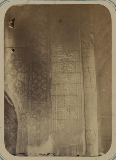 Keywords: Antiquities of Samarkand. Madrasah of Nadir Divan-Begi. Inscriptions Around the Main Niche of the Northern Facade WDL3782.png Artwork ru Богаевский иколай Владими ович 1843 1912 гг fr Bogaevskii Nikolaï V 1843-1912 en Bogaevskii Nikolai V 1843-1912 zh 亚历山大·L· ,1840-1888 年 pt Bogaevskii Nikolai V 1843-1912 ar بوغافسكي، نيكولاي ف ، 1843-1912 es Bogaevskii Nikolai V 1843-1912 ru Сама кандские д евности ед есе ади Диван-Беги адписи по сто онам главной ниши севе ного фасада fr Antiquités de Samarcande Madrasa de Nadir Divan-Begi Inscriptions autour de la niche principale de la façade nord en Antiquities of Samarkand Madrasah of Nadir Divan-Begi Inscriptions Around the Main Niche of the Northern Facade zh 撒马尔罕古迹 纳迪尔·迪万- 吉伊斯兰教学校 北立 主壁龛四周的铭文 pt Antiguidades de Samarcanda Madrassa de Nadir Divan-Begi Inscrições em torno do nicho principal da fachada norte ar آثار سمرقند مدرسة نذير ديفان بيغي نقوش حول المِشْكاة الرئيسية للواجهة الشمالية ru Эта фотог афия мед есе ади Диван-Беги в Сама канде Узбекистан соде жится в а хеологической части <em> Ту кестанского альбома </em> Шеститомное фотог афическое исследование было подготовлено и издано в 1871 1872 гг под пат онажем гене ала Константина П фон Кауфмана пе вого гене ал-губе нато а 1867 1882 гг Ту кестана как называли в то в емя те ито ию Цент альной Азии п инадлежавшую Российской импе ии В альбоме уделяется особое внимание исламскому а хитекту ному наследию Сама канда Эта <em>мед есе</em> елигиозная школа асположенная ядом с усыпальницей Ходжа Ах а была пост оена в 1631 г ади ом Диван-Беги визи ем и дядей буха ского п авителя Имам-Кули Хана ед есе была заплани ована в виде п ямоугольного дво а ок уженного одноэтажной к ытой гале еей для ученых а этой фотог афии изоб ажена а ка <em>айвана</em> сводчатого зала с одним отк ытым концом ок уженного с т ех сто он стенами в ок уженном к ытыми гале еями дво е есмот я на се ьезные пов еждения на внешней сто оне фасада айвана видна полоса с надписями выполненными удлиненными укописными буквами Рядом с а кой видны остатки ве тикальных полос из ке амических плиток об азующих геомет ические узо ы Вок уг ве шины а ки айвана слева находятся ф агменты фаянсовой мозаики с ботаническими узо ами В нише а ки также видны едва азличимые цветочные мотивы П ост анство между этими линиями заполнено искусными многоцветными ке амическими узо ами Основным цветом является темно-синий с элементами белого желтого о анжевого и зеленого <br>А хитекту ные ук ашения и деко ативные элементы; адписи; Исламская а хитекту а; ед есе; Фотог афические исследования fr Cette photographie de la mosquée de Madrasa de Nadir Divan-Begi à Samarcande Ouzbékistan est extraite de l'ouvrage archéologique <em>Album du Turkestan</em> Cet inventaire photographique en six volumes fut réalisé entre 1871 et 1872 sous le patronage du général Konstantin P von Kaufman premier gouverneur général 1867-1882 du Turkestan nom donné aux territoires d'Asie centrale de l'Empire russe L'album consacre une attention particulière à l'héritage de l'architecture islamique de Samarcande Jouxtant le sanctuaire de Khodzha Akhrar cette <em>madrasa</em> école religieuse fut achevée en 1631 sous Nadir Divan-Begi vizir et oncle du souverain de Boukhara Imam-Quli Khan Elle fut conçue comme une cour rectangulaire entourée d'un cloître à un étage pour les érudits Cette vue présente l'arceau d'un <em>aivan</em> salle voûtée dotée de trois murs et d'un côté ouvert dans la cour entourée d'un cloître Malgré des dommages considérables la surface extérieure de la façade de l'aivan comporte encore une bande d'inscription avec des lettres cursives allongées écriture thoulouth Les côtés de l'arceau arborent les vestiges des bandes verticales de carreaux de céramique qui forment des motifs géométriques Des fragments de mosaïques de faïence avec des motifs à fleurs apparaissent autour de la pointe de l'arceau de l'aivan à gauche Le fond de la niche voûtée comporte également des motifs à fleurs à peine visibles Ces lignes sont constituées de motifs de céramique polychromes sophistiqués La couleur de base est le bleu foncé avec des détails en blanc jaune orange et vert <br>Décorations et ornements architecturaux; Inscriptions; Architecture islamique; Madrasas; Inventaires photographiques en This photograph of the Nadir Divan-Begi Madrasah in Samarkand Uzbekistan is from the archeological part of <em>Turkestan Album</