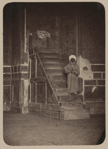 | Keywords: Antiquities of Samarkand. Madrasah of Tillia Kari. Inner Courtyard (Western Side). Elevation (Minbar) inside the Main Mosque WDL3846.png  Artwork ru Богаевский  иколай Владими ович 1843 1912 гг fr Bogaevskii Nikolaï V 1843-1912 en Bogaevskii Nikolai V 1843-1912 zh 亚历山大·L· ,1840-1888 年 pt Bogaevskii Nikolai V 1843-1912 ar بوغافسكي، نيكولاي ف ، 1843-1912 es Bogaevskii Nikolai V 1843-1912 ru Сама кандские д евности  ед есе Тилля-Ка и Внут енний дво западная сто она Возвышение минба внут и главной мечети fr Antiquités de Samarcande Madrasa de Tillia Kari Cour intérieure côté ouest Élévation minbar à l'intérieur de la mosquée principale en Antiquities of Samarkand Madrasah of Tillia Kari Inner Courtyard Western Side Elevation Minbar inside the Main Mosque zh 撒马尔罕古迹 季里雅·卡利伊斯兰教学校 内部庭院(西侧) 主清 寺内的高台(敏 尔) pt Antiguidades de Samarcanda Madrassa de Tillia Kari Pátio interno lado ocidental Elevação minbar dentro da mesquita principal ar آثار سمرقند مدرسة تِلْيَا كَرِى الفناء الداخلي الجانب الغربي منبر داخل المسجد الرئيسي ru Эта фотог афия внут енней части мечети в мед есе Тилля-Ка и в Сама канде Узбекистан соде жится в а хеологической части <em> Ту кестанского альбома </em> Шеститомное фотог афическое исследование было подготовлено и издано в 1871 1872 гг под пат онажем гене ала Константина П фон Кауфмана пе вого гене ал-губе нато а 1867 1882 гг Ту кестана как называли в то в емя те  ито ию Цент альной Азии п инадлежавшую Российской импе ии В альбоме уделяется особое внимание исламской а хитекту е Сама канда в том числе памятникам XIV и XV вв пе иода п авления Тиму а Таме лана и его п еемников В цент е Сама канда находится ансамбль Регистан объединяющий в себе т и основных об азца <em>madrasah</em> мед есе  елигиозных школ Т етья часть Регистана мед есе Тилля-Ка и была пост оена в 1646 1660 гг на месте бывшего ка аван-са ая В цент е этого удивительного снимка находятся ступени ведущие на <em>минба </em> или кафед у  а нижних стенах видны  азнооб азные элементы из  езного камня ве оятно м амо а с еди них панели и выступающий поясок Стены над пояском пок ыты искусными многоцветными ке амическими ук ашениями О наменты включают сложные геомет ические фигу ы из пе есекающихся линий а также  омбовидные узо ы с ботаническими мотивами Пове хности окаймлены ве тикальными полосами из ке амической плитки Фигу а в белом тю бане п идает этому священному месту некое величие <br>Исламская а хитекту а;  ед есе; Фотог афические исследования; По т етные фотог афии; По т еты fr Cette photographie de l'intérieur de la mosquée de la madrasa de Tillia Kari à Samarcande Ouzbékistan est extraite de l'ouvrage archéologique <em>Album du Turkestan</em> Cet inventaire photographique en six volumes fut réalisé entre 1871 et 1872 sous le patronage du général Konstantin P von Kaufman premier gouverneur général 1867-1882 du Turkestan nom donné aux territoires d'Asie centrale de l'Empire russe L'album consacre une attention particulière à l'architecture islamique de Samarcande avec notamment des monuments datant des XIV<sup>e</sup> et XV<sup>e</sup> siècles lors du règne de Tamerlan et de ses successeurs Situé au centre de Samarcande l'ensemble du Registan est composé de trois exemples majeurs de <em>madrasa</em> école religieuse Le troisième composant du Registan la madrasa de Tillia Kari fut construit entre 1646 et 1660 sur le site d'un ancien caravansérail Cette vue remarquable de l'intérieur de la mosquée présente les marches menant vers le <em>minbar</em> ou chaire Dans la partie inférieure les murs arborent des éléments de pierre sculptés probablement en marbre variés notamment des panneaux de lambris et une saillie Les murs au-dessus de la saillie sont recouverts d'ornements sophistiqués en céramique polychrome Les décorations incluent des figures géométriques complexes formées par des lignes d'intersection ainsi que des motifs de losanges et à fleurs Les surfaces sont bordées de bandes verticales de carreaux de céramique La présence de l'homme au turban blanc accentue la dignité solennelle de ce lieu sacré <br>Architecture islamique; Madrasas; Inventaires photographiques; Portraits photographiques; Portraits en This photograph of the interior of the mosque at the Tillia Kari Madrasah in Samarkand Uzbekistan is from the archeological part of <em>Turkestan Album</em> The six-volume photographic survey was produced in 1871-72 under the patronage of General Konstantin P von Kaufman the first governor-general 1867-82 of Turkestan as the Russian Empire s Central Asian terr