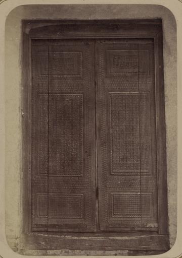 | Keywords: Antiquities of Samarkand. Madrasah of Tillia Kari. Main Facade (Southern). Door to the Inner Courtyard WDL3839.png Artwork ru Богаевский иколай Владими ович 1843 1912 гг fr Bogaevskii Nikolaï V 1843-1912 en Bogaevskii Nikolai V 1843-1912 zh 亚历山大·L· ,1840-1888 年 pt Bogaevskii Nikolai V 1843-1912 ar بوغافسكي، نيكولاي ف ، 1843-1912 es Bogaevskii Nikolai V 1843-1912 ru Сама кандские д евности ед есе Тилля-Ка и Главный фасад южный Две ь во внут енний дво fr Antiquités de Samarcande Madrasa de Tillia Kari Façade principale sud Porte de la cour intérieure en Antiquities of Samarkand Madrasah of Tillia Kari Main Facade Southern Door to the Inner Courtyard zh 撒马尔罕古迹 提利娅·卡里伊斯兰教学校 主立 (南侧) 内部庭院的门 pt Antiguidades de Samarcanda Madrassa Tillia Kari Fachada principal sul Porta para o pátio interno ar آثار سمرقند مدرسة تِلْيَا كَرِى الواجهة الرئيسية الجنوبية باب يؤدي إلى الفناء الداخلي ru Эта фотог афия две и главного входа в мед есе Тилля-Ка и в Сама канде Узбекистан соде жится в а хеологической части <em> Ту кестанского альбома </em> Шеститомное фотог афическое исследование было подготовлено и издано в 1871 1872 гг под пат онажем гене ала Константина П фон Кауфмана пе вого гене ал-губе нато а 1867 1882 гг Ту кестана как называли в то в емя те ито ию Цент альной Азии п инадлежавшую Российской импе ии В альбоме уделяется особое внимание исламской а хитекту е Сама канда в том числе памятникам XIV и XV вв пе иода п авления Тиму а Таме лана и его п еемников В цент е Сама канда находится ансамбль Регистан объединяющий в себе т и основных об азца <em>madrasah</em> мед есе елигиозных школ Т етья часть Регистана мед есе Тилля-Ка и была пост оена в 1646 1660 гг на месте бывшего ка аван-са ая Вход в п ямоугольный дво об амлен ог омным <em>айваном</em> сводчатым залом с одним отк ытым концом ок уженным с т ех сто он стенами с каждой сто оны кото ого асположена двухэтажная сводчатая гале ея а фотог афии показана де евянная две ь в нише айвана Панели две и пок ыты замысловатой ельефной езьбой с геомет ическими и ботаническими мотивами Ве хние го изонтальные панели соде жат езные полосы с надписями в укописном стиле а обеих ство ках две и видны ве тикальные щели ство ки были ук еплены металлическими полосами све ху и снизу <br>А хитекту ные ук ашения и деко ативные элементы; Две и и две ные п оемы; Исламская а хитекту а; ед есе; Фотог афические исследования fr Cette photographie de la porte de l'entrée principale de la madrasa de Tillia Kari à Samarcande Ouzbékistan est extraite de l'ouvrage archéologique <em>Album du Turkestan</em> Cet inventaire photographique en six volumes fut réalisé entre 1871 et 1872 sous le patronage du général Konstantin P von Kaufman premier gouverneur général 1867-1882 du Turkestan nom donné aux territoires d'Asie centrale de l'Empire russe L'album consacre une attention particulière à l'architecture islamique de Samarcande avec notamment des monuments datant des XIV<sup>e</sup> et XV<sup>e</sup> siècles lors du règne de Tamerlan et de ses successeurs Situé au centre de Samarcande l'ensemble du Registan est composé de trois exemples majeurs de <em>madrasa</em> école religieuse Le troisième composant du Registan la madrasa de Tillia Kari fut construit entre 1646 et 1660 sur le site d'un ancien caravansérail L'entrée de la cour rectangulaire est abritée par un grand <em>aivan</em> salle voûtée dotée de trois murs et d'un côté ouvert encadré des deux côtés d'une arcade à deux étages Cette photographie présente la porte en bois située dans la niche de l'aivan Les panneaux de la porte sont recouverts de gravures en relief complexes formant des motifs géométriques et à fleurs La partie supérieure des panneaux horizontaux est décorée de bandes d'inscription en style cursif Présentant des fissures verticales le haut et le bas des deux battants de la porte ont été renforcés par des pièces métalliques <br>Décorations et ornements architecturaux; Portes et seuils; Architecture islamique; Madrasas; Inventaires photographiques en This photograph of the door of the main entrance to the Tillia Kari Madrasah in Samarkand Uzbekistan is from the archeological part of <em>Turkestan Album</em> The six-volume photographic survey was produced in 1871-72 under the patronage of General Konstantin P von Kaufman the first governor-general 1867-82 of Turkestan as the Russian Empire s Central Asian territories were called The album devotes special attention to Samarkand s Islamic architecture such as 14th- and 15th-century monuments from the reign of Timur Tamerlane and his successors I