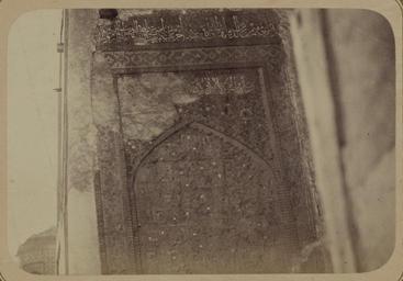 Keywords: Antiquities of Samarkand. Madrasah of Tillia Kari. Main Facade (Southern). End. Inscription along the inside of the Main Niche and Its Upper Part WDL3840.png Artwork ru Богаевский иколай Владими ович 1843 1912 гг fr Bogaevskii Nikolaï V 1843-1912 en Bogaevskii Nikolai V 1843-1912 zh 亚历山大·L· ,1840-1888 年 pt Bogaevskii Nikolai V 1843-1912 ar بوغافسكي، نيكولاي ف ، 1843-1912 es Bogaevskii Nikolai V 1843-1912 ru Сама кандские д евности ед есе Тилля-Ка и Главный фасад южный Конец адпись внут и главной ниши и в ее ве хней части fr Antiquités de Samarcande Madrasa de Tillia Kari Façade principale sud Fin Inscription le long du mur intérieur de la niche principale et de sa partie supérieure en Antiquities of Samarkand Madrasah of Tillia Kari Main Facade Southern End Inscription along the inside of the Main Niche and Its Upper Part zh 撒马尔罕古迹 提利娅·卡里伊斯兰教学校 主立 (南侧) 结 部分 主壁龛内侧及其上部的铭文 pt Antiguidades de Samarcanda Madrassa Tillia Kari Fachada principal sul Fim Inscrição na parte interna do nicho principal e em sua parte superior ar آثار سمرقند مدرسة تِلْيَا كَرِى الواجهة الرئيسية الجنوبية النهاية نقش بطول الجزء الداخلي والعلوي من المِشْكاة الرئيسية ru Эта фотог афия главного входа в мед есе Тилля-Ка и в Сама канде Узбекистан соде жится в а хеологической части <em> Ту кестанского альбома </em> Шеститомное фотог афическое исследование было подготовлено и издано в 1871 1872 гг под пат онажем гене ала Константина П фон Кауфмана пе вого гене ал-губе нато а 1867 1882 гг Ту кестана как называли в то в емя те ито ию Цент альной Азии п инадлежавшую Российской импе ии В альбоме уделяется особое внимание исламской а хитекту е Сама канда в том числе памятникам XIV и XV вв пе иода п авления Тиму а Таме лана и его п еемников В цент е Сама канда находится ансамбль Регистан объединяющий в себе т и основных об азца <em>madrasah</em> мед есе елигиозных школ Т етья часть Регистана мед есе Тилля-Ка и была пост оена в 1646 1660 гг на месте бывшего ка аван-са ая Вход в п ямоугольный дво об амлен ог омным <em>айваном</em> сводчатым залом с одним отк ытым концом ок уженным с т ех сто он стенами с каждой сто оны кото ого находится двухэтажная сводчатая гале ея с комнатами для ученых Здесь показана ке амическая панель в ве хней части левой сто оны ниши айвана Основная часть панели находится в углублении в фо ме ст ельчатой а ки Сложная пове хность пок ыта многоцветной плиткой майоликой об азующей замысловатые геомет ические и ботанические узо ы ад ст ельчатой а кой находятся ф агменты полосы надписи в укописном стиле Панель об амлена выступающей деко ативной полоской с геомет ическими фигу ами кото ая заве шается более ши окой полосой с надписью в укописном стиле <br>А хитекту ные ук ашения и деко ативные элементы; адписи; Исламская а хитекту а; ед есе; Фотог афические исследования fr Cette photographie de l'entrée principale de la madrasa de Tillia Kari à Samarcande Ouzbékistan est extraite de l'ouvrage archéologique <em>Album du Turkestan</em> Cet inventaire photographique en six volumes fut réalisé entre 1871 et 1872 sous le patronage du général Konstantin P von Kaufman premier gouverneur général 1867-1882 du Turkestan nom donné aux territoires d'Asie centrale de l'Empire russe L'album consacre une attention particulière à l'architecture islamique de Samarcande avec notamment des monuments datant des XIV<sup>e</sup> et XV<sup>e</sup> siècles lors du règne de Tamerlan et de ses successeurs Situé au centre de Samarcande l'ensemble du Registan est composé de trois exemples majeurs de <em>madrasa</em> école religieuse Le troisième composant du Registan la madrasa de Tillia Kari fut construit entre 1646 et 1660 sur le site d'un ancien caravansérail L'entrée de la cour rectangulaire est abritée par un grand <em>aivan</em> salle voûtée dotée de trois murs et d'un côté ouvert encadré d'une arcade à deux étages contenant des salles réservées aux érudits Cette vue montre un panneau de céramique situé dans la partie supérieure de la façade gauche de la niche de l'aivan La partie principale du panneau est encastrée dans la figure représentant un arceau pointu La surface complexe est recouverte de carreaux de majolique polychromes formant des motifs géométriques et à fleurs sophistiqués Des fragments d'une bande d'inscription en style cursif sont visibles au-dessus de l'arceau pointu Le panneau est bordé d'une
