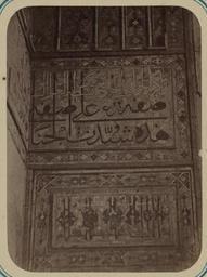 | Keywords: Antiquities of Samarkand. Madrasah of Ulugh Beg. Inscription in the Main Niche in Its Upper Part. Right Side WDL3816.png Artwork ru Богаевский иколай Владими ович 1843 1912 гг fr Bogaevskii Nikolaï V 1843-1912 en Bogaevskii Nikolai V 1843-1912 zh 亚历山大·L· ,1840-1888 年 pt Bogaevskii Nikolai V 1843-1912 ar بوغافسكي، نيكولاي ف ، 1843-1912 es Bogaevskii Nikolai V 1843-1912 ru Сама кандские д евности ед есе Улугбека адпись в главной нише в ве хней ее части П авая сто она fr Antiquités de Samarcande Madrasa d'Ulugh Beg Inscription dans la partie supérieure de la niche principale Côté droit en Antiquities of Samarkand Madrasah of Ulugh Beg Inscription in the Main Niche in Its Upper Part Right Side zh 撒马尔罕古迹 鲁伯· 格伊斯兰教学校 主壁龛上半部分的铭文 右侧 pt Antiguidades de Samarcanda Madrassa de Ulugh Beg Inscrição no nicho principal em sua parte superior Lado direito ar آثار سمرقند مدرسة أُلوك بيك نقش بالجزء العلوي من المِشْكاة الرئيسية الجانب الأيمن ru Эта фотог афия ке амических панелей в мед есе Улугбека в Сама канде Узбекистан соде жится в а хеологической части <em> Ту кестанского альбома </em> Шеститомное фотог афическое исследование было подготовлено и издано в 1871 1872 гг под пат онажем гене ала Константина П фон Кауфмана пе вого гене ал-губе нато а 1867 1882 гг Ту кестана как называли в то в емя те ито ию Цент альной Азии п инадлежавшую Российской импе ии В альбоме уделяется особое внимание исламской а хитекту е Сама канда в том числе памятникам XIV и XV вв пе иода п авления Тиму а Таме лана и его п еемников В цент е Сама канда находится ансамбль Регистан объединяющий в себе т и основных об азца <em>madrasah</em> мед есе елигиозных школ Самая ста ая мед есе площади Регистан была пост оена в 1417 1420 гг Улугбеком 1393 1449 гг п авителем-аст ономом и внуком Тиму а и названа в его честь За в емя п авления Улугбека мед есе посещали около 100 учеников и она считалась ведущим цент ом исламского об азования Здесь показаны ке амические панели ве хней левой части ниши а ки ог омного <em>айвана</em> сводчатого зала с одним отк ытым концом ок уженного с т ех сто он стенами со дво а Изящные многоцветные ук ашения включают панель с удлиненными буквами пе сидско-а абского письма с пе еплетающимися цветочными мотивами Под надписью асположена еще одна фаянсовая панель с ботаническими фигу ами в геомет ическом по ядке Обе панели окаймлены полосами с геомет ическими и цветочными узо ами а самом ве ху фотог афии видны ке амические элементы составляющие основу свода ниши Главным цветом является синий <br>А хитекту ные ук ашения и деко ативные элементы; адписи; Исламская а хитекту а; ед есе; Фотог афические исследования fr Cette photographie de panneaux de céramique de la madrasa d'Ulugh Beg à Samarcande Ouzbékistan est extraite de l'ouvrage archéologique <em>Album du Turkestan</em> Cet inventaire photographique en six volumes fut réalisé entre 1871 et 1872 sous le patronage du général Konstantin P von Kaufman premier gouverneur général 1867-1882 du Turkestan nom donné aux territoires d'Asie centrale de l'Empire russe L'album consacre une attention particulière à l'architecture islamique de Samarcande avec notamment des monuments datant des XIV<sup>e</sup> et XV<sup>e</sup> siècles lors du règne de Tamerlan et de ses successeurs Situé au centre de Samarcande l'ensemble du Registan est composé de trois exemples majeurs de <em>madrasa</em> école religieuse La madrasa la plus ancienne sur la place du Registan porte le nom du roi-astronome et petit-fils de Tamerlan Ulugh Beg vers 1393-1449 qui la construisit entre 1417 et 1420 Pendant le règne d'Ulugh Beg la madrasa était considérée comme un centre important de l'éducation islamique et comptait près de 100 étudiants Les panneaux de céramique présentés ici appartiennent à la partie supérieure gauche de la niche du grand arceau de l'<em>aivan </em> salle voûtée dotée de trois murs et d'un côté ouvert dans la cour La décoration polychrome sophistiquée inclut un panneau d'inscription en caractères allongés perso-arabes entrelacés de motifs à fleurs Sous cette inscription un autre panneau de faïence est orné de figures à fleurs disposées de façon géométrique Les deux panneaux sont bordés de bandes de motifs géométriques et à fleurs Des éléments de céramique composant la base de la voûte de la niche sont visibles dans la partie supérieure de la photographie La couleur domi