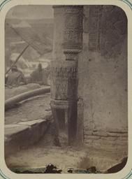 | Keywords: Antiquities of Samarkand. Madrasah of Ulugh Beg. Main Facade (Eastern). Base WDL3852.png Artwork ru Богаевский иколай Владими ович 1843 1912 гг fr Bogaevskii Nikolaï V 1843-1912 en Bogaevskii Nikolai V 1843-1912 zh 亚历山大·L· ,1840-1888 年 pt Bogaevskii Nikolai V 1843-1912 ar بوغافسكي، نيكولاي ف ، 1843-1912 es Bogaevskii Nikolai V 1843-1912 ru Сама кандские д евности ед есе Улугбека Главный фасад восточный Основание fr Antiquités de Samarcande Madrasa d'Ulugh Beg Façade principale est Base en Antiquities of Samarkand Madrasah of Ulugh Beg Main Facade Eastern Base zh 撒马尔罕古迹 鲁伯· 格伊斯兰教学校 主立 ( 侧) 基座 pt Antiguidades de Samarcanda Madrassa de Ulugh Beg Fachada principal lado leste Base ar آثار سمرقند مدرسة أُلوك بيك الواجهة الرئيسية الشرقية القاعدة ru Эта фотог афия ф агмента восточного фасада мед есе Улугбека в Сама канде Узбекистан соде жится в а хеологической части <em> Ту кестанского альбома </em> Шеститомное фотог афическое исследование было подготовлено и издано в 1871 1872 гг под пат онажем гене ала Константина П фон Кауфмана пе вого гене ал-губе нато а 1867 1882 гг Ту кестана как называли в то в емя те ито ию Цент альной Азии п инадлежавшую Российской импе ии В альбоме уделяется особое внимание исламской а хитекту е Сама канда в том числе памятникам XIV и XV вв пе иода п авления Тиму а Таме лана и его п еемников В цент е Сама канда находится ансамбль Регистан объединяющий в себе т и основных об азца <em>madrasah</em> мед есе елигиозных школ Самое ста ое мед есе площади Регистан было пост оена в 1417 1420 гг Улугбеком 1393 1449 гг п авителем-аст ономом и внуком Тиму а и названо в его честь Во в емена п авления Улугбека с еди ученых в мед есе были математики и аст ономы и оно считалось ведущим цент ом исламского об азования Здесь показан ф агмент левого южного внут еннего угла ог омной входной а ки <em>айвана</em> сводчатого зала с одним отк ытым концом ок уженного с т ех сто он стенами Внизу видно сегменти ованное езное м амо ное основание угловой колонны есмот я на значительные пов еждения над основанием колонны видны многоцветные ке амические ук ашения Помимо геомет ических узо ов на стене нижний сте жень колонны ок ужают ф агменты надписи в укописном стиле Слева видны фигу ы сидящие на площади Регистан где велась ыночная то говля с еди пост оек из глинобитного ки пича <br>А хитекту ные ук ашения и деко ативные элементы; Исламская а хитекту а; ед есе; Фотог афические исследования fr Cette photographie d'un détail de la façade est de la madrasa d'Ulugh Beg à Samarcande Ouzbékistan est extraite de l'ouvrage archéologique <em>Album du Turkestan</em> Cet inventaire photographique en six volumes fut réalisé entre 1871 et 1872 sous le patronage du général Konstantin P von Kaufman premier gouverneur général 1867-1882 du Turkestan nom donné aux territoires d'Asie centrale de l'Empire russe L'album consacre une attention particulière à l'architecture islamique de Samarcande avec notamment des monuments datant des XIV<sup>e</sup> et XV<sup>e</sup> siècles lors du règne de Tamerlan et de ses successeurs Situé au centre de Samarcande l'ensemble du Registan est composé de trois exemples majeurs de <em>madrasa</em> école religieuse La madrasa la plus ancienne sur la place du Registan porte le nom du roi-astronome et petit-fils de Tamerlan Ulugh Beg vers 1393-1449 qui la construisit entre 1417 et 1420 Pendant le règne d'Ulugh Beg des mathématiciens et des astronomes comptaient parmi les érudits de la madrasa qui était considérée comme un centre important de l'éducation islamique Cette vue présente un détail de l'angle intérieur gauche sud du grand arceau à l'entrée de l'<em>aivan</em> salle voûtée dotée de trois murs et d'un côté ouvert Dans la partie inférieure la base en marbre de la colonne d'angle sculptée est segmentée Malgré des dommages considérables les ornements en céramique polychrome sont visibles au-dessus de la base de la colonne Outre les motifs géométriques sur le mur des fragments d'une inscription en style cursif encerclent le fût de colonne inférieur gauche des personnes sont assises sur la place du Registan où un marché animé se tient parmi les structures en briques de terre crue <br>Décorations et ornements architecturaux; Architecture islamique; Madrasas; Inventaires photographiques en This photograph of a detail from the east facade of the Ulugh Beg Madrasah in Samarkand Uzbekistan is from the archeological part of <em>Turkestan Album</em>